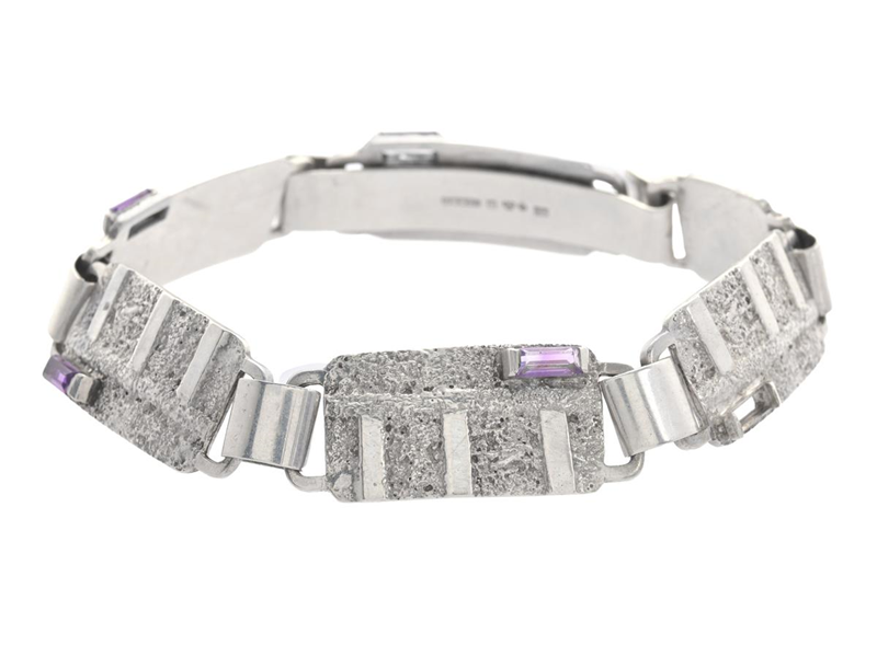 ARMBAND, silver, baguetteslipade ametister, Dahlgren & Co, Malmö 1968, längd 20 cm, vikt 34,6 g.