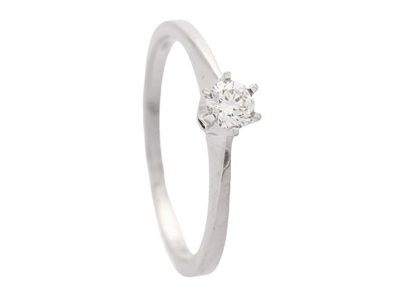 ENSTENSRING, 18K vitguld, briljantslipad diamant 0,20 ct enl gravyr, ca Cr/VS, Iduna, stl 18 mm, vikt 2,5 g, litet nagg på kulett.