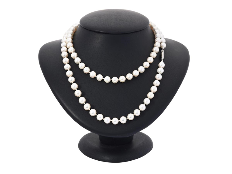 PÄRLCOLLIER, odlade pärlor ca 7,2-7,4 mm, lås i 18K vitguld, längd 80 cm, vikt 49,0 g.