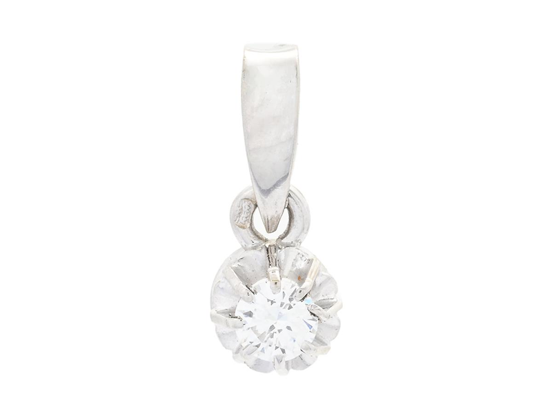 ENSTENSHÄNGE, 18K vitguld, briljantslipad diamant ca 0,15 ct, ca TW/VS, höjd 23 mm, vikt 0,8 g.