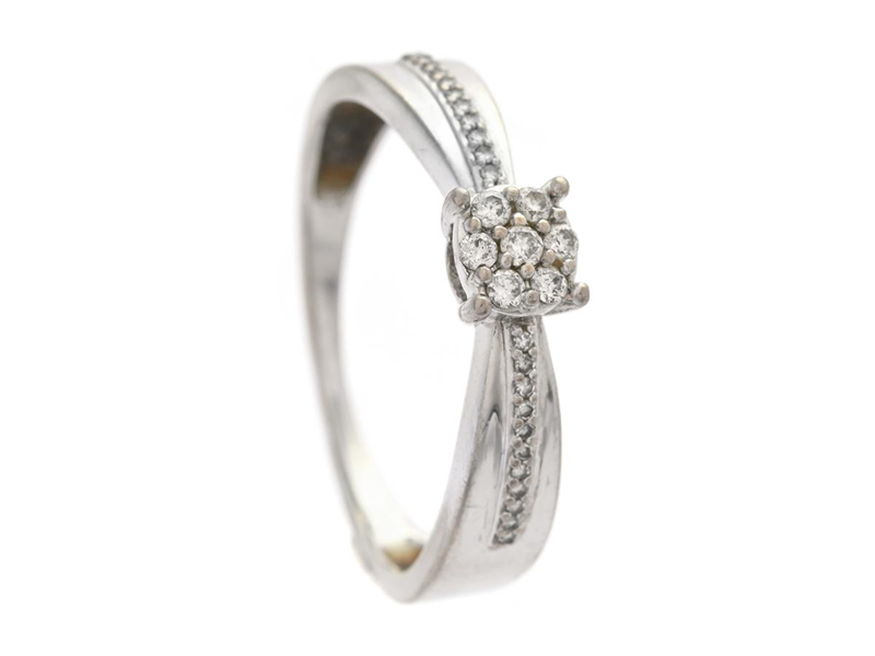 RING, 18K vitguld, 7 briljant - och 22 åttkantslipade diamanter ca 0,15 ctv, Guldfynd, stl 19 mm, vikt 3,0 g.