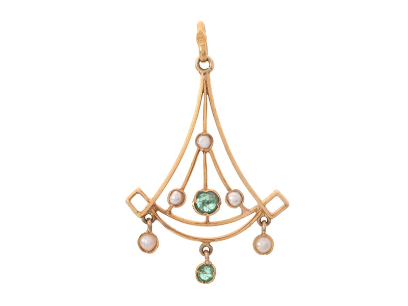 HÄNGE, 18K guld, smaragder och pärlor, höjd 35 mm, vikt 2,9 g.
