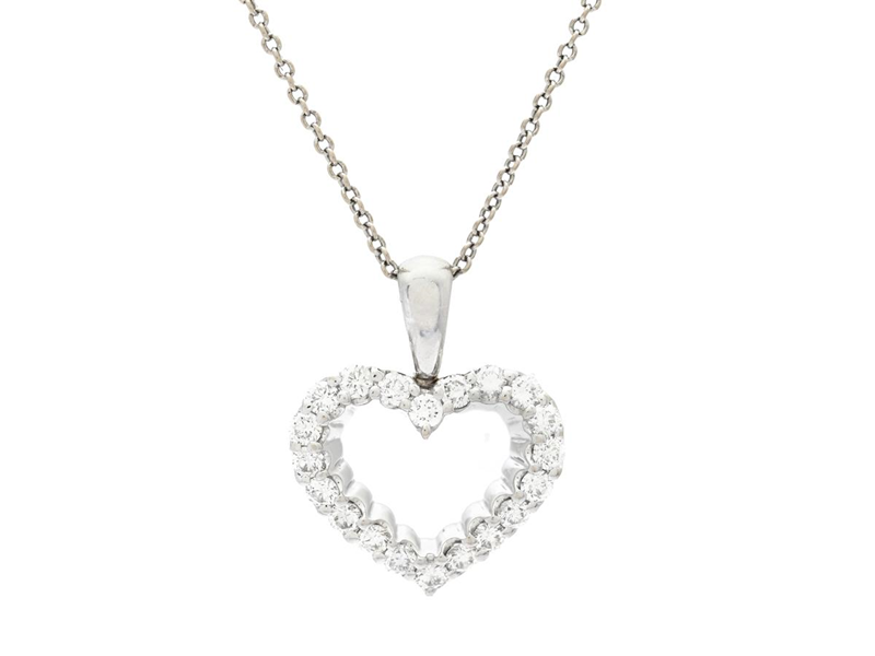 HÄNGE MED KEDJA, hjärta, 18K vitguld, 20 briljantslipade diamanter 0,60 ctv, ca TW-Cr/VS-SI, längd 44 cm, vikt 4,9 g, flera stenar något lösa i sin fattning.