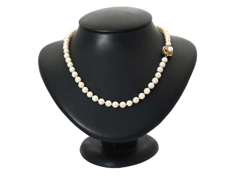 PÄRLCOLLIER, odlade saltvattenspärlor ca 6 mm, lås i 14K guld, längd 43 cm, vikt 22,3 g.