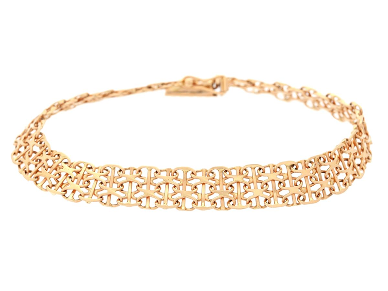ARMBAND, 18K guld, X-länk med stav, Falköping 1976, längd 18 cm, vikt 10,1 g.