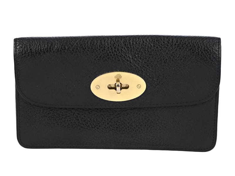 PLÅNBOK, MULBERRY, svart präglat läder, guldfärgade beslag, 19x11x1 cm, mynt, ID, kort, bruksslitage.