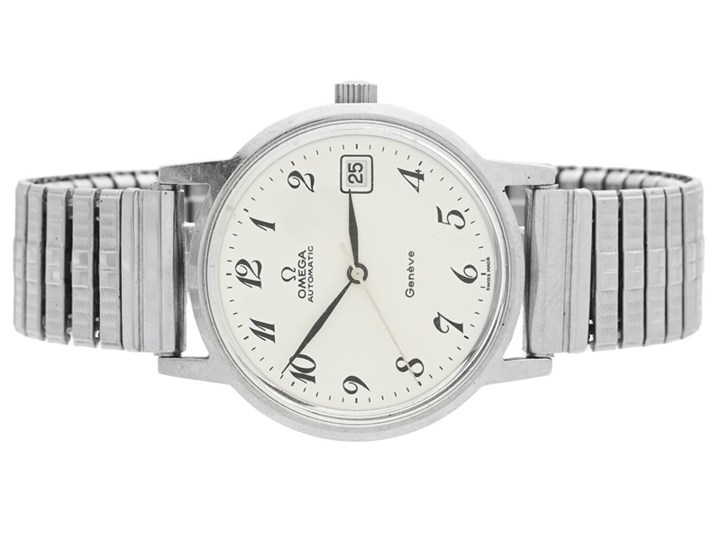 OMEGA, Genève (Swiss Made), Cal 1012, Serie nr. 38212055, Ref nr. ST 166.0163, Boett nr. 166.0163 (HF), herrur, 35 mm, stål, automatisk, plexiglas, datum, ca 1974, metallänk ej original.