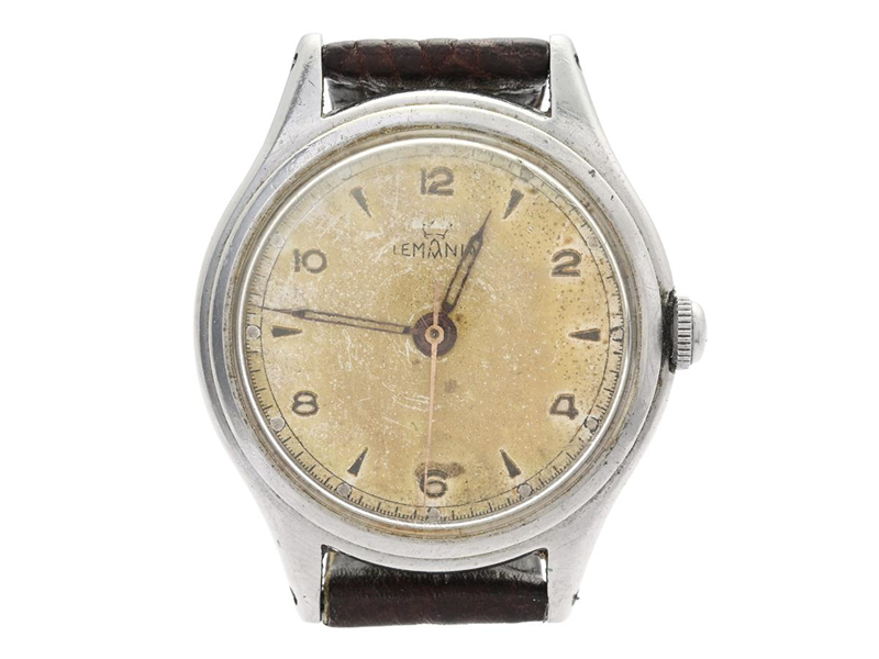 LEMANIA, herrur, 36 mm, Cal 3050, Serie nr. 538248, Boett nr. 239 A, stål, manuell, plexiglas, skadad urtavla/visare, servicebehov, läderband, ca 1950.