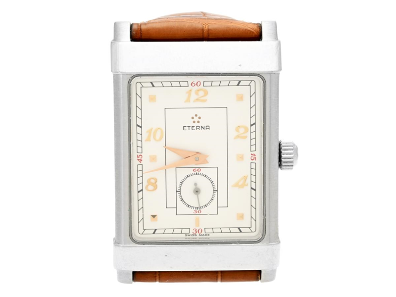 ETERNA, 1935, "140 Years", Serie nr. F018/140, herrur, 25 x 35,5 (41) mm, stål, manuell, safirglas, liten sekundvisare, glasbaksida, läderband, originalspänne, ca 1996.