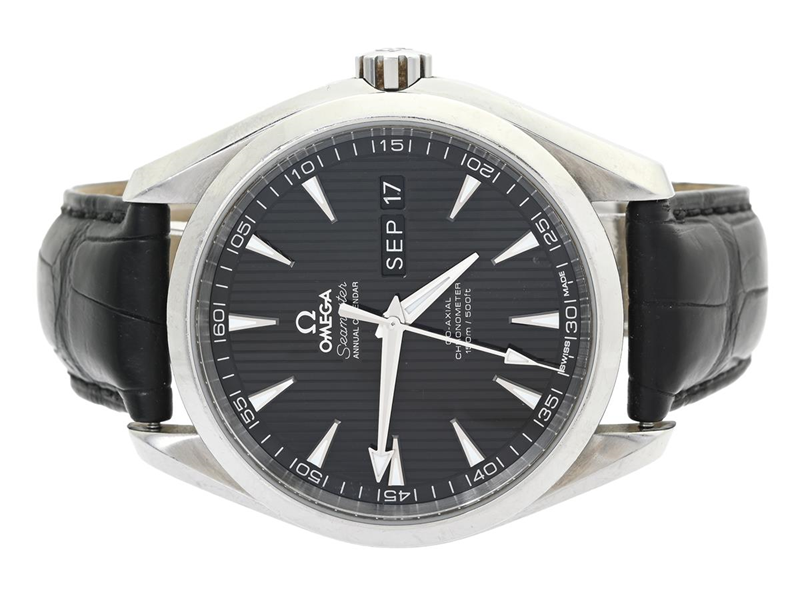 OMEGA, Seamaster, Aqua Terra Annual Calendar, Chronometer, Cal 8601, Verk nr. 85838663, Serie nr. 85838663, PIC nr. 231.13.43.22.01.002, herrur, 43 mm, stål, automatisk, safirglas, datum, månad, glasbaksida, läderband, viklås, cert, september 2013, box, ytterkartong.