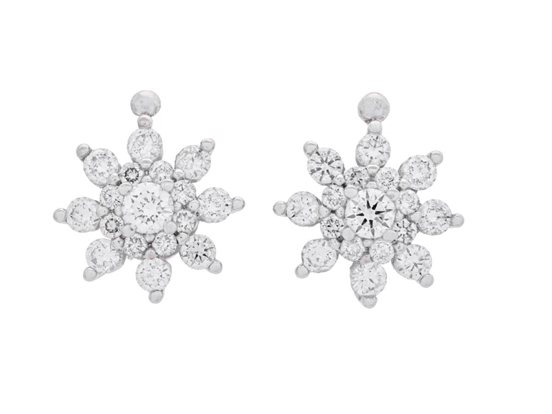 ÖRHÄNGEN, 14K vitguld, 34 briljantslipade diamanter ca 0,40 ctv, ca TW-W/VS-SI, stift, vikt 1,7 g, långa stift.