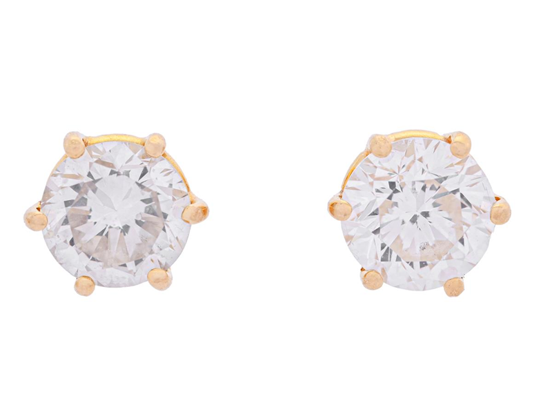 ENSTENSÖRHÄNGEN, 18K guld, 2 briljantslipade diamanter ca 1,20 ctv, ca Cr-TCa/SI, stift, vikt 1,6 g.