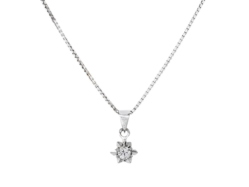 HÄNGE MED KEDJA, 18K vitguld, briljantslipad diamant ca 0,16 ct, caTW/SI, veneziakedja längd 38 cm, vikt 4,2 g.