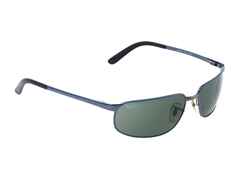 SOLGLASÖGON, RAY BAN, RB 3221 013, 59 16, blå bågar, etui, mörka glas.