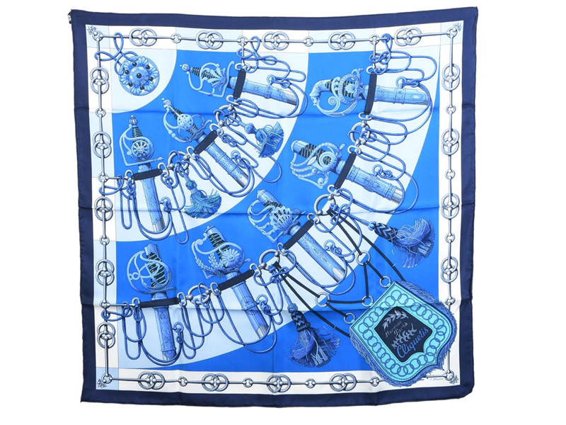 SCARF, HERMÈS, Cliquetis, Julia Abadie, 100% siden, ca 90x90 cm, blå, vit, ask.