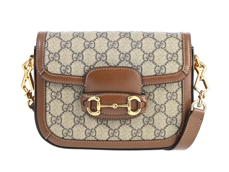 VÄSKA, GUCCI, Horsebit 1955 Shoulder Bag, GG canvas, brunt läder, guldfärgade beslag, 20,5x16x5 cm, två st avtagbar axelrem, brunt läder, Web, grönt, rött tyg, kvitto från 2023, dustbag.