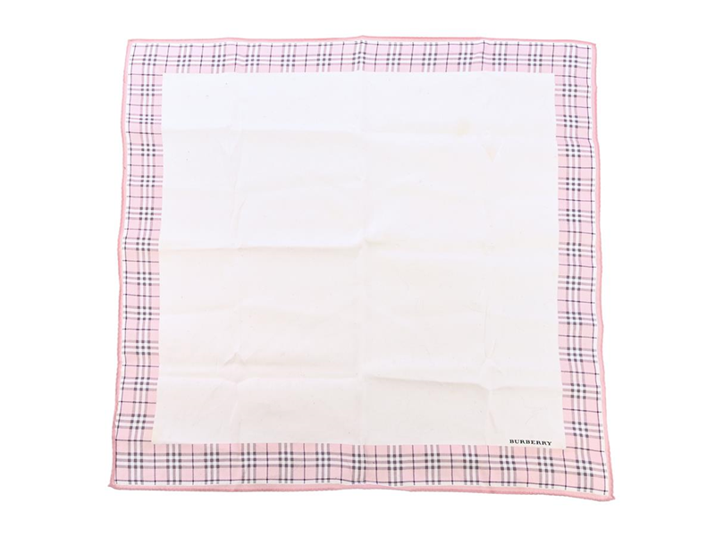 SCARF, BURBERRY, 100% bomull, 49x49 cm, rosa, vit, brun, bruksslitage.