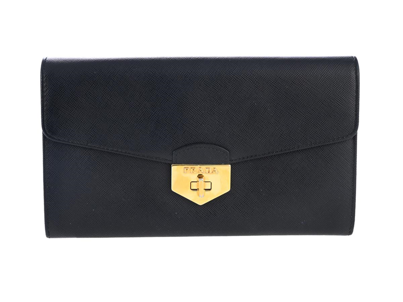 PLÅNBOK, PRADA, svart saffiano läder, guldfärgade beslag, 21x12x1 cm, kartong.
