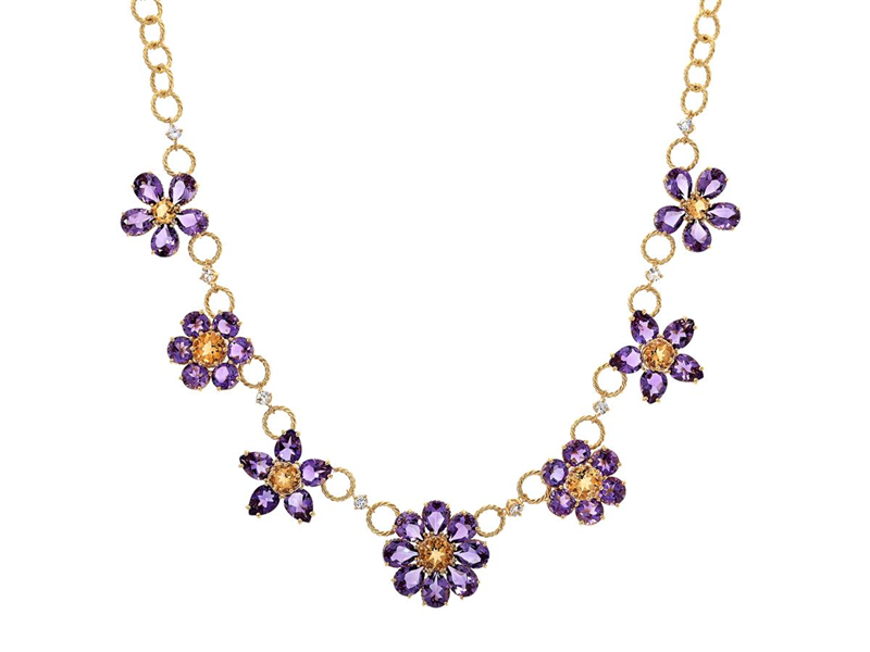 DOLCE&GABBANA, collier, Spring necklace, 18K guld, ametister ca 34,00 ctv, citriner ca 5,50 ctv, vita safirer, odlad South Seapärla ca 11,6 mm, ställbar längd, vikt 41,8 g, certifikat, smyckespåse och originaletui.