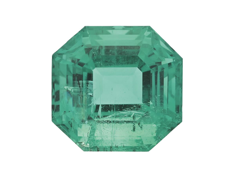 SMARAGD, smaragdslipad, 4,33 ct, 9,99x9,657x6,97 mm, Colombia, minor oil, GCS report 5786-1650, inneslutningar som når ytan.