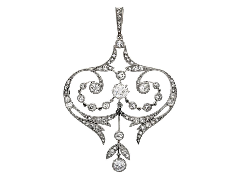 HENRI VEVER, hänge, platina, gammal- och rosenslipade diamanter, antik, Belle Epoque, Paris, ca 1900, numrerad 3806, höjd 55 mm, vikt 7,9 g, skada och lagningar på ramen, några diamanter har skador och nagg.