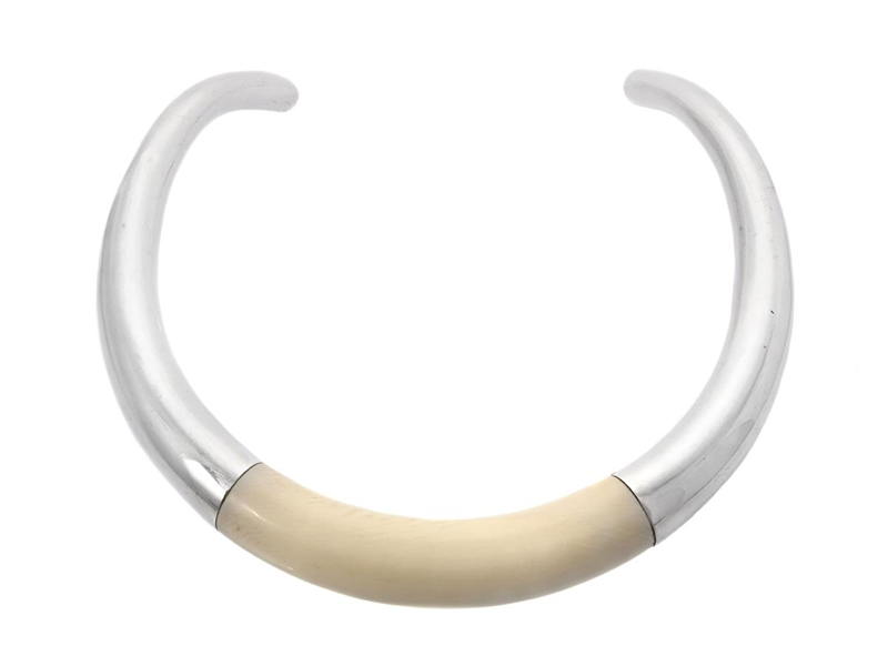 GEORG JENSEN, collier, Aura, nr A29AE, sterlingsilver, mammuttbete, formgiven 1978 av Anne Ammitzböll, Danmark, innermått 11,5x12 cm, vikt 128,1 g.