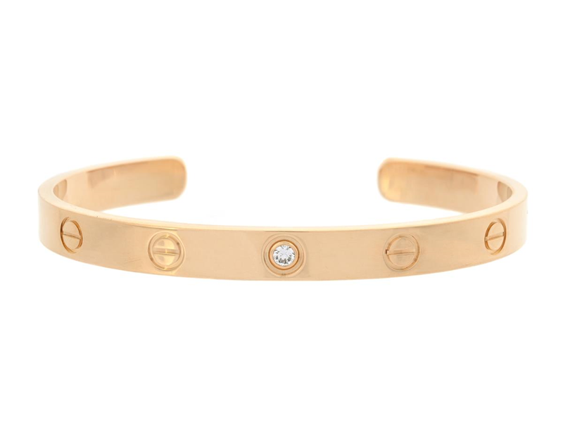 CARTIER, armband, Love bracelet, 18K guld, briljantslipad diamant 0,10 ct, serienr CRB728, stl 17, vikt 26,5 g, certifikat, reseetui, originaletui och ytterkartong.