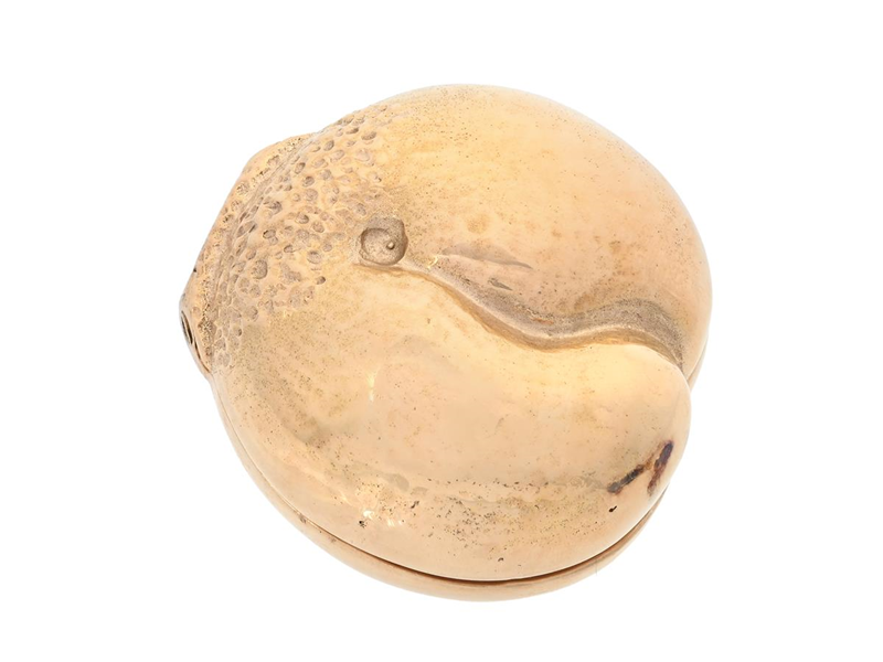 OLLE OHLSSON, dosa, 18K guld, signerad, numrerad 1/10, Stockholm 1978, mått 29x29x16 mm, vikt 30,9 g, originaletui, en av 16 gulddosor skapade till Utsällningen Gulddosan som hölls på Galleri Gamla stan och Röhsska museet samma år. (d)