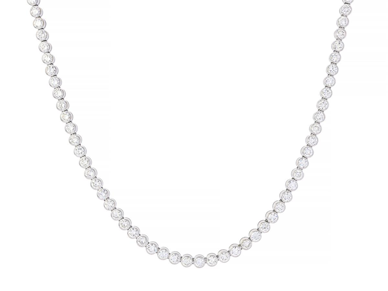 RIVIERECOLLIER, 18K vitguld, 85 briljantslipade diamanter ca 20,00 ctv, ca R-TCa/SI-P, längd 43 cm, vikt 44,4 g, en fattning med spricka i metallen, flera diamanter har nagg på kuletten.