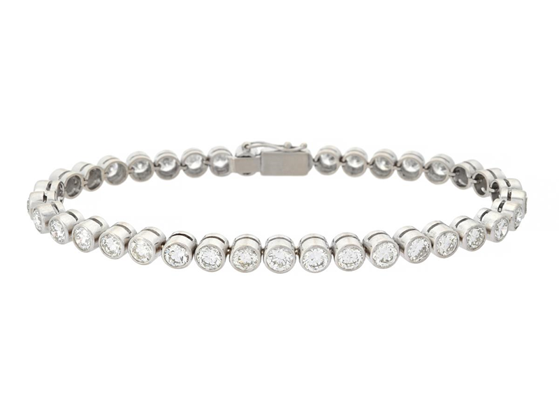 TENNISARMBAND, 18K vitguld, 38 briljantslipade diamanter ca 9,00 ctv, ca R-TCa/SI-P, längd 19,5 cm, vikt 20,5 g, flera diamanter har nagg på kuletten.