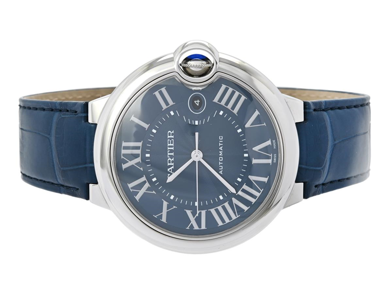 CARTIER, Ballon bleu de Cartier, Cal 1847 MC, Ref nr. WSBB0027, Serie nr. 3765184574EY, herrur, 42 mm, stål, automatisk, safirglas, datum, integrerat läderband, viklås, cert, augusti 2025, box, ytterkartong.