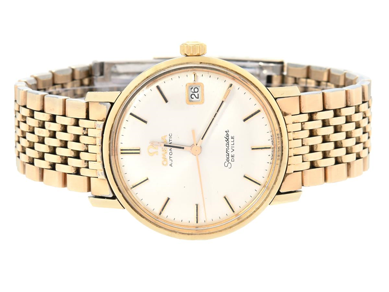 OMEGA, Seamaster, De Ville (T Swiss Made T), Cal 565, Serie nr. 24276385, Ref nr. CD 166.020, Boett nr. 166.020 (C.B), herrur, 34 mm, guld på stål, automatisk, plexiglas, datum, skadad visare, originallänk, viklås, Ref nr. 1037-2.71/570, ca 1966, box.