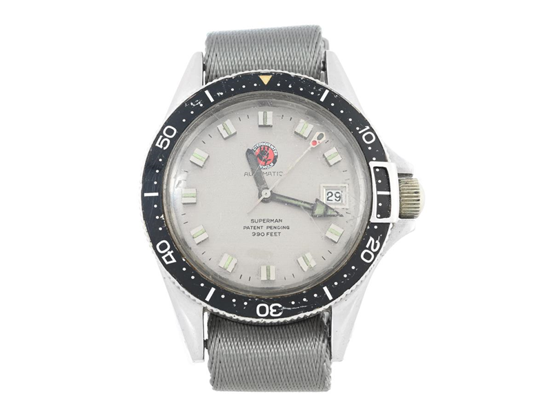 YEMA, Superman (Patent Pending, 900 feet), "Dykprodukter Stockholm", Cal ETA 2782, Ref nr. 87062, Boett nr. 146740, herrur, 39 mm, stål, automatisk, plexiglas, datum, logo på urtavlan, skadad urtavla/visare, servicebehov, OBS: 1 st. verkhållarskruv saknas, packning bakboett saknas, NATO-band, ca 1970.