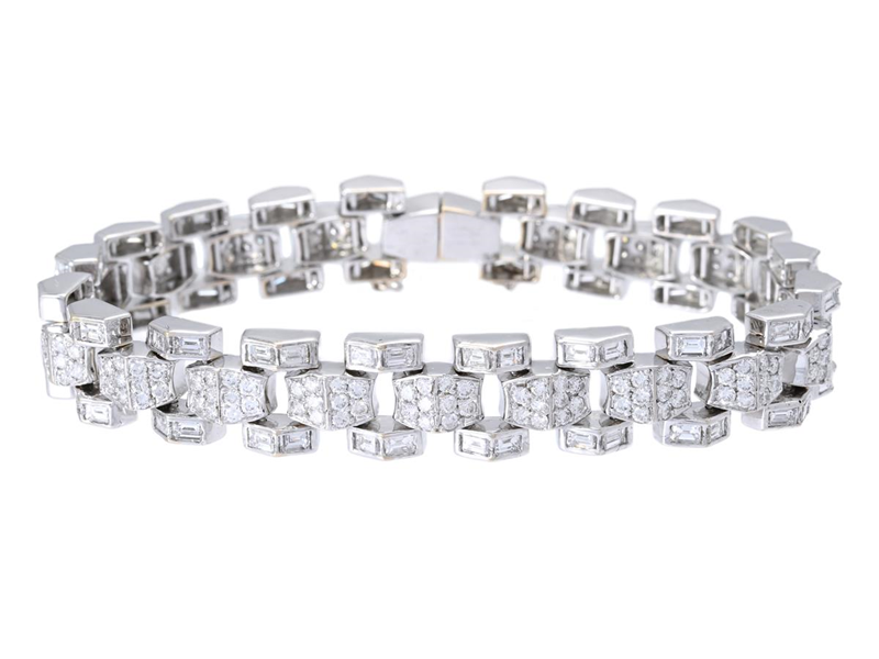ARMBAND, 18K vitguld, baguett- och briljantslipade diamanter ca 8,30 ctv, ca R-Cr/VVS-SI, signerade A. Fitaihi, Saudiarabien, längd 18 cm, vikt 34,0 g, några diamanter har nagg och skador.