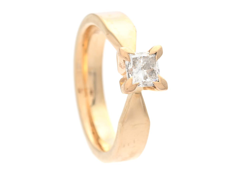 ENSTENSRING, 18K guld, prinsesslipad diamant 0,50 ct, TW(F)/VS1, GIA dossier 6375894734, stl 15,75 mm, vikt 6,2 g.