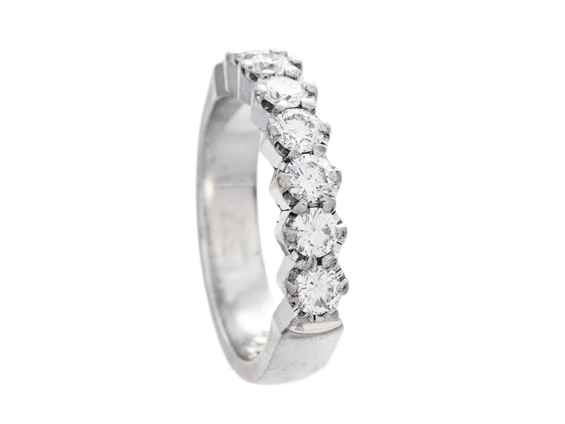 ALLIANSRING, 18K vitguld, 7 briljantslipade diamanter ca 0,66 ctv, TW/VVS enligt gravyr, stl 16 mm, vikt 5,7 g.
