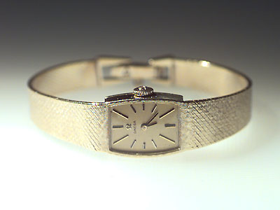 OMEGA, caliber 485, damur, 14K guld, manuell, plexiglas, integrerad länk, längd 152-156 mm, ca 1971.