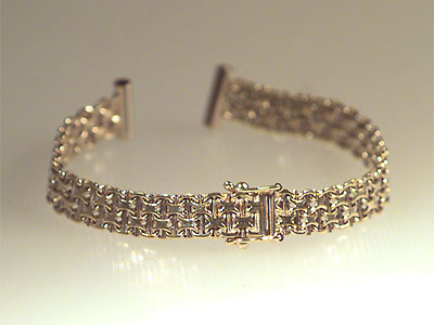 DAMURSLÄNK, x - länk, 18K guld, vikt 11 g, längd 142 mm, bredd 7 mm, chanér 10 mm.