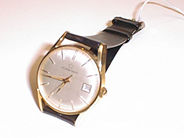 ETERNA-MATIC, herrur, guld på stål, automatisk, plexiglas, datum, läderband, 1960-tal, oanvänd.