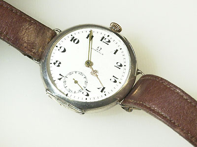 OMEGA, mormorsur omgjort till armbandsur, silver, ca 1918.