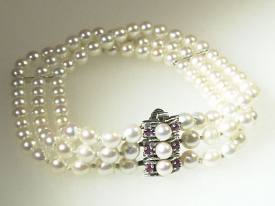 ARMBAND, 3 rader odlade pärlor 4,5-5 mm, längd 20 cm.