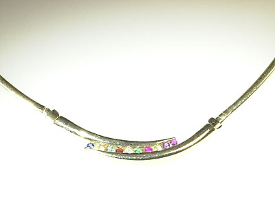 COLLIER, 14K guld med briljant ca 0,05ct ca W/VS samt färgstenar, vikt 32 g.