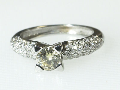 RING, 18K vitguld med briljant ca 0,60ct ca CA-LY/VS samt briljanter tot ca 0,60ct ca W/VS, stl 17.