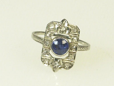 RING, 14 K, art deco grovt slipade rosten- stenar, safir ca 0.60 ct