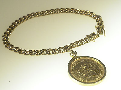 ARMBAND, 18K guld med 1 mexikanskt guldmynt vikt 43 g. L=20 cm.
