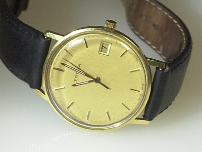 CERTINA, herrur, 18K guld, quartz, plexiglas, datum, skadad boett, läderband.