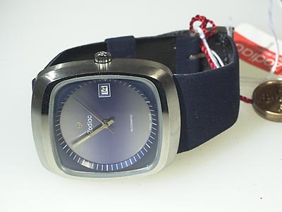 ZODIAC, herrur, stål, automatisk, mineralglas, datum, läderband, oanvänd, ca 1970.