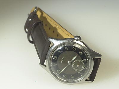LEMANIA, herrur, stål, manuell, plexiglas, liten sekundvisare, skadad urtavla, läderband, 1940-tal.