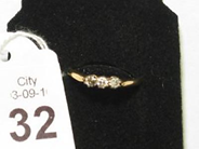 1 ring med 3 gammalslipade dia tot ca 0,13ct 14k. Vikt 1,7g