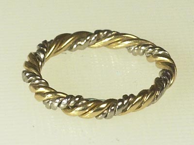 "GOTLANDSRING" tvinnad, 18K guld/ vitguld, vikt 3,5 g, stl 16 1/2 mm.